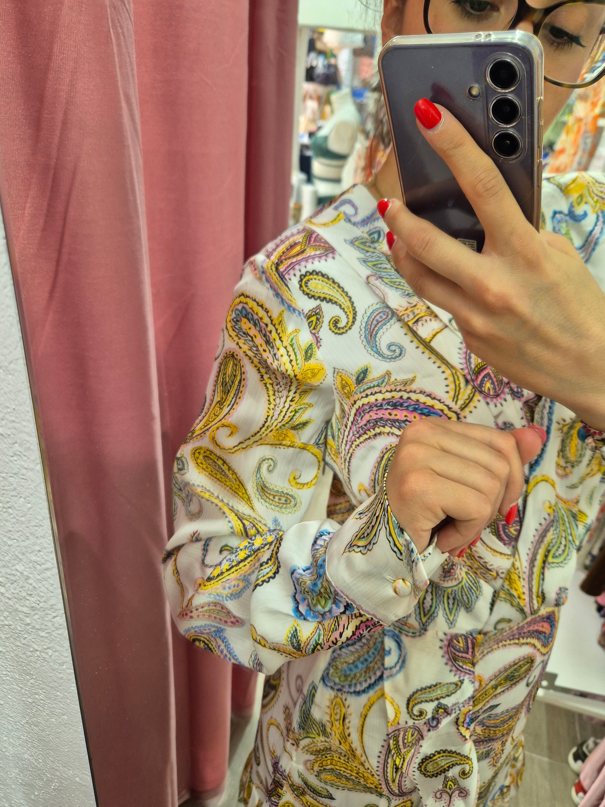 Marchio Guess, tessuto camicia. Maniche velate. Scollo ad incrocio con bottoncino