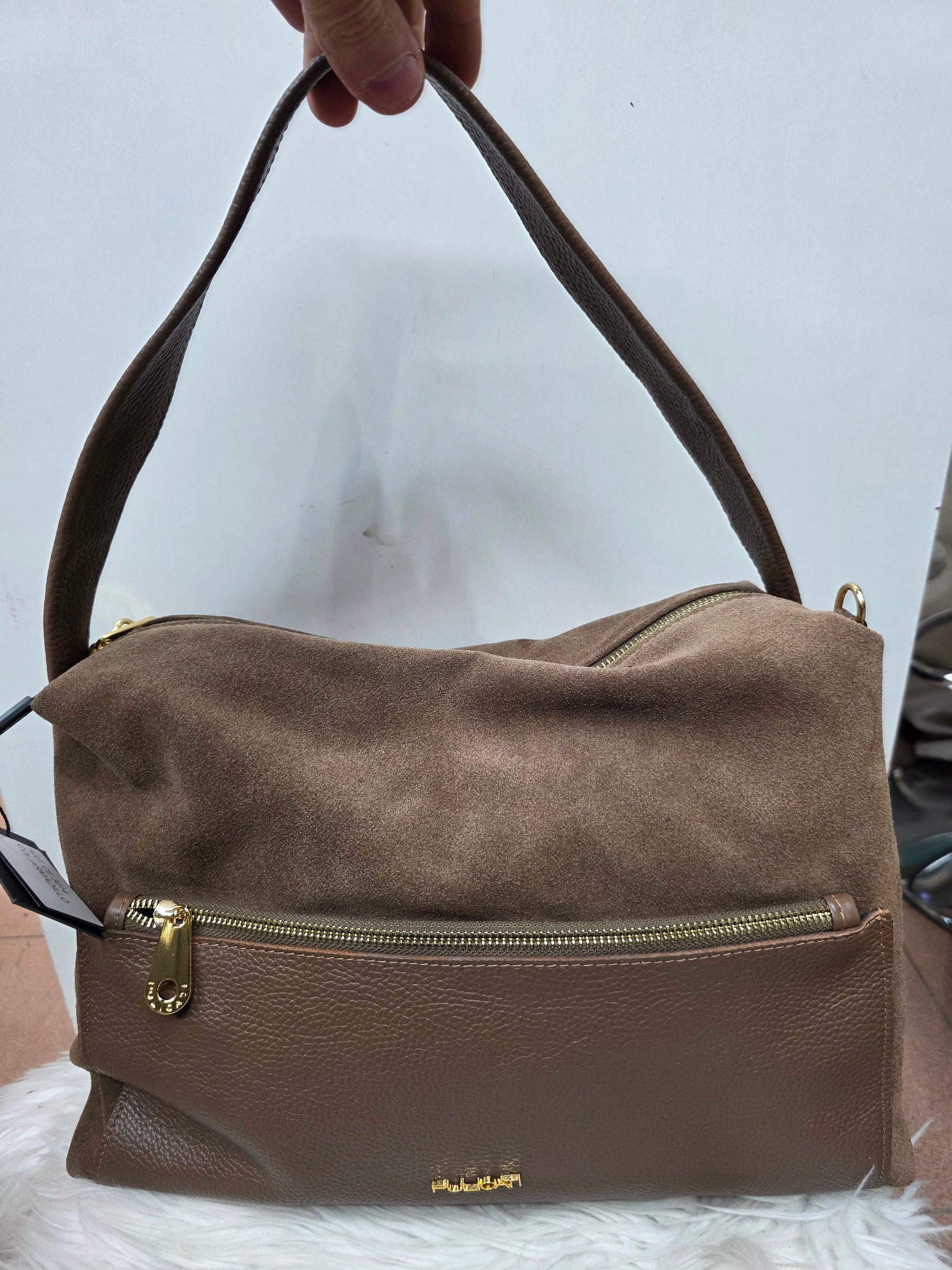 Chiusura con zip a spalla e tracolla regolabile